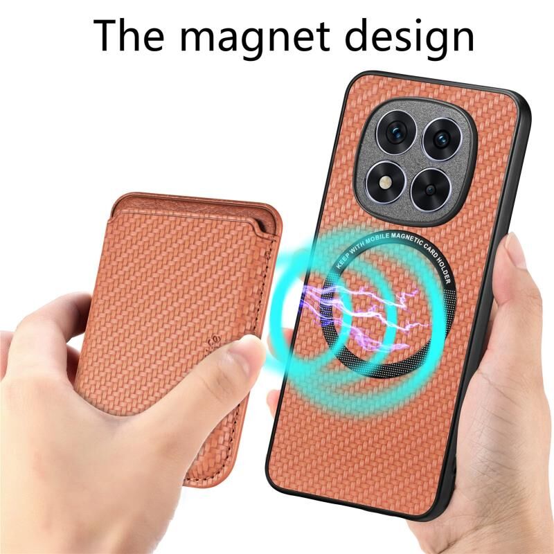 For Xiaomi Redmi Note 14 Pro+ 5G Carbon Fiber Leather Card Magnetic Phone Case(Brown)