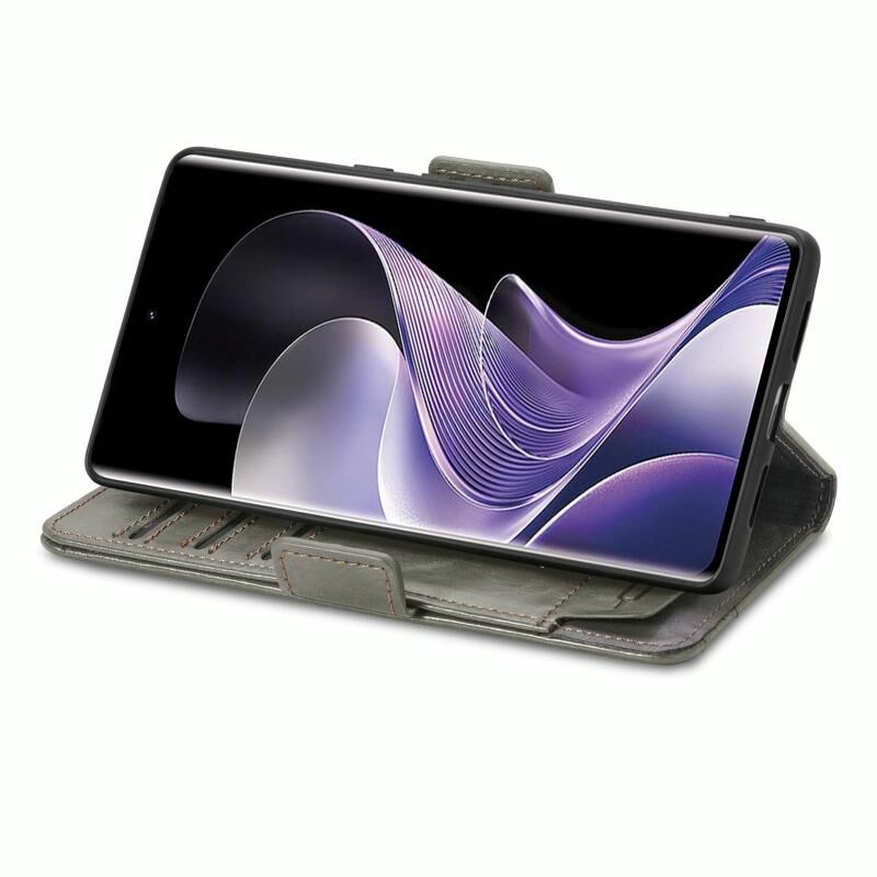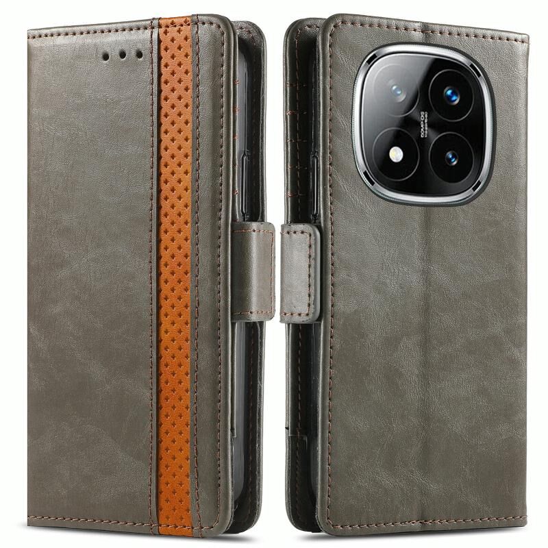 Για Xiaomi Redmi Note 14 Pro 5G CaseNeo Splicing Διπλή μαγνητική πόρπη δερμάτινη θήκη τηλεφώνου (γκρι)