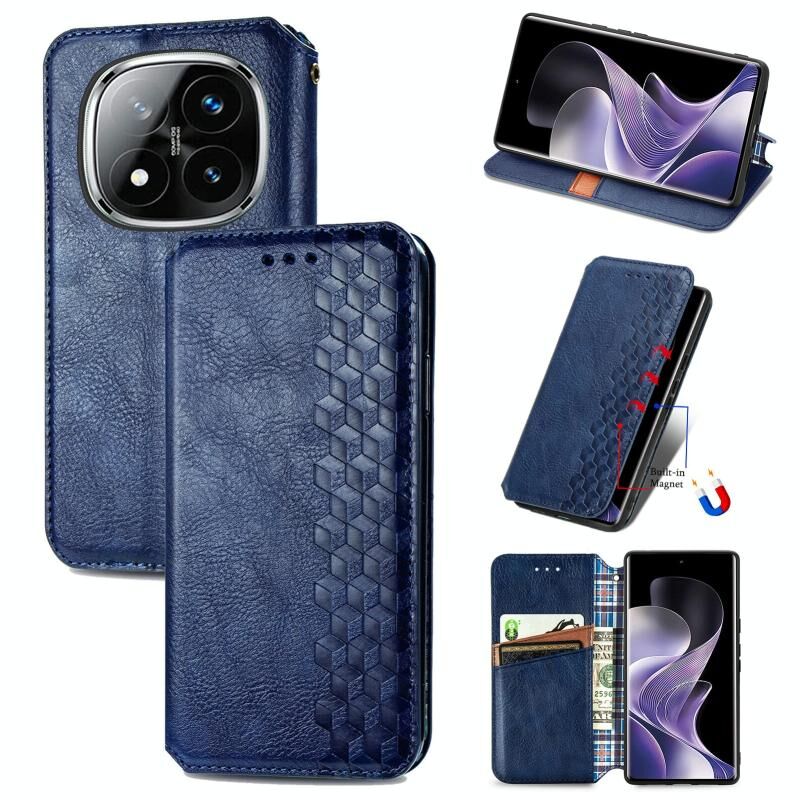 Για Xiaomi Redmi Note 14 Pro + 5G Cubic Grid Pressed μαγνητική δερμάτινη θήκη τηλεφώνου (μπλε)