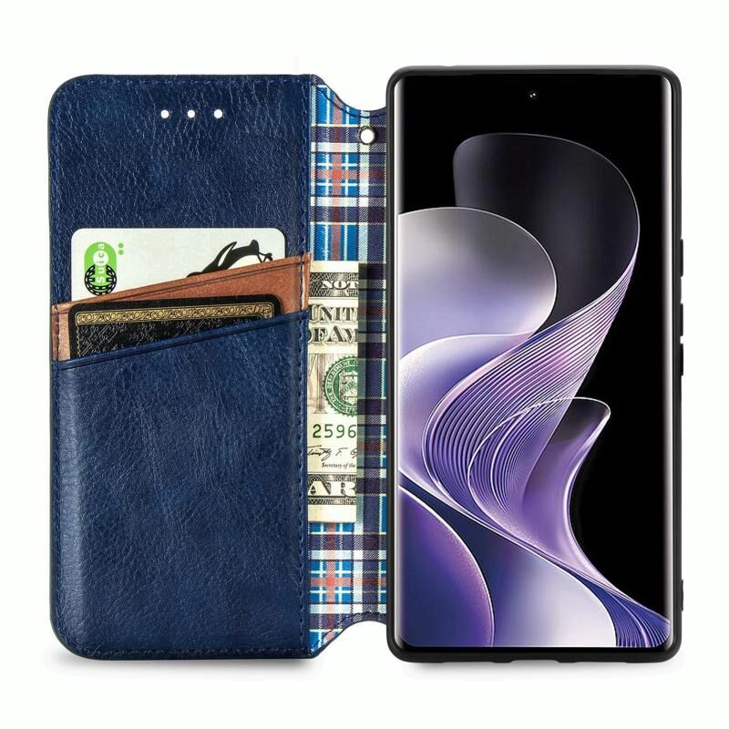 Για Xiaomi Redmi Note 14 Pro 5G Cubic Grid Pressed μαγνητική δερμάτινη θήκη τηλεφώνου (μπλε)