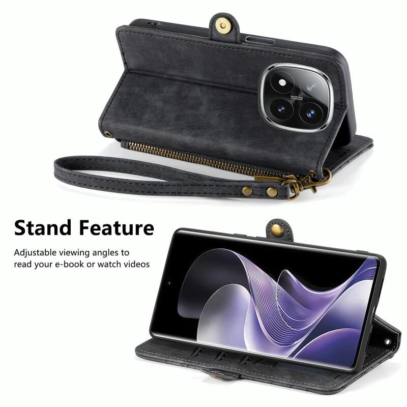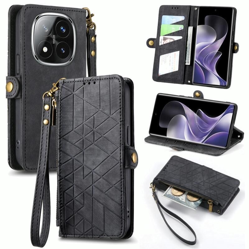 Για Xiaomi Redmi Σημείωση 14 Pro 5G γεωμετρική φερμουάρ πορτοφόλι πλευρά πόρπη δερμάτινη θήκη τηλεφώνου (Μαύρο)