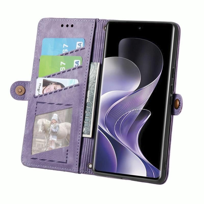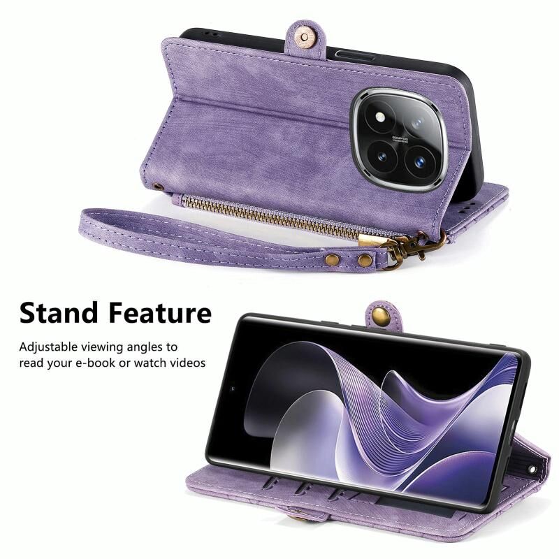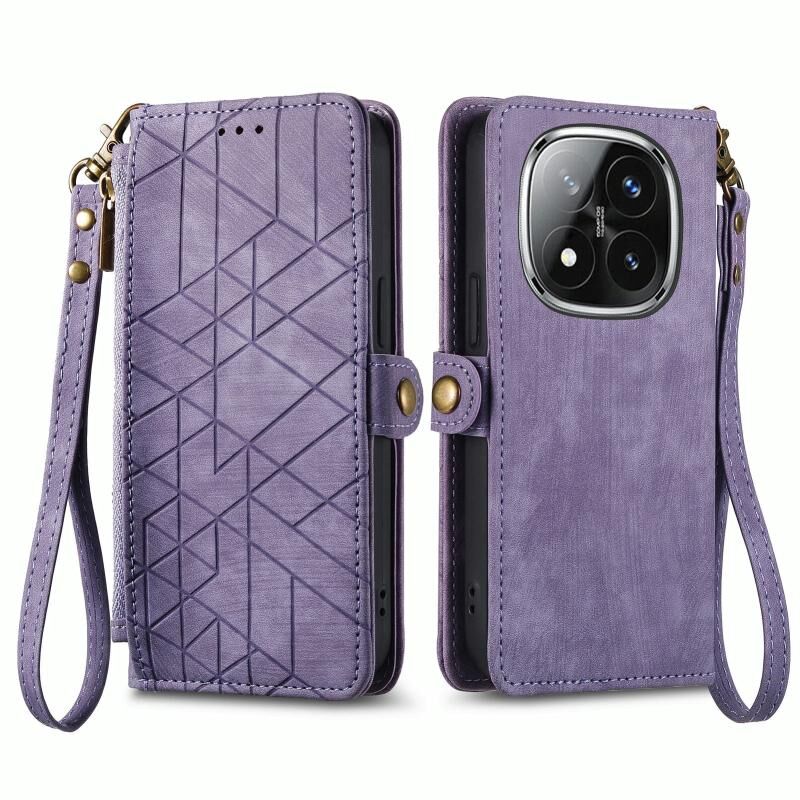 Για Xiaomi Redmi Σημείωση 14 Pro 5G γεωμετρική φερμουάρ πορτοφόλι πλευρά πόρπη δερμάτινη θήκη τηλεφώνου (Μωβ)