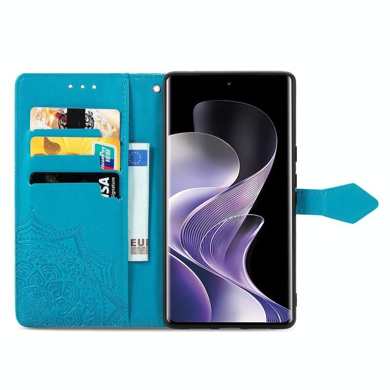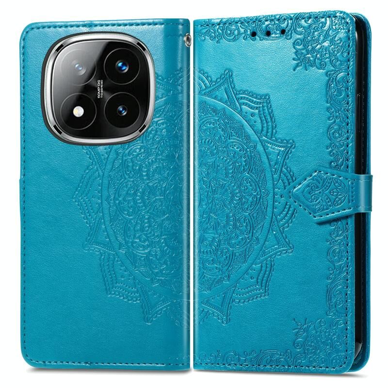Θήκη τηλεφώνου δερμάτινη με ανάγλυφο σχέδιο Mandala για Xiaomi Redmi Note 14 Pro 5G (Χρυσορόδινο)