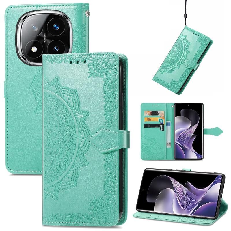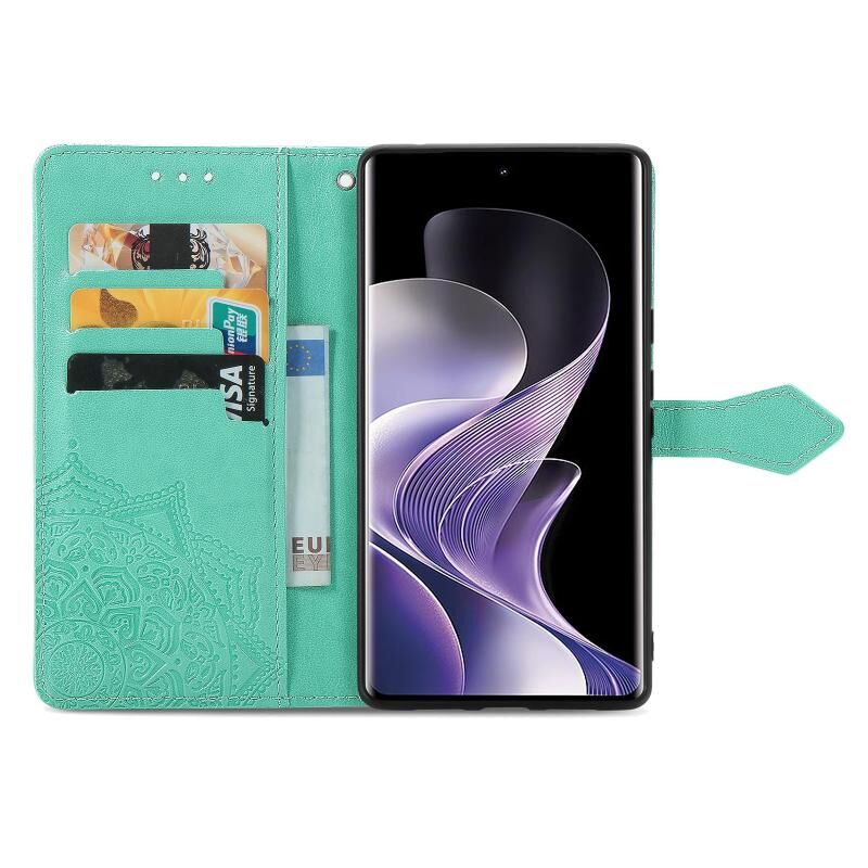Θήκη τηλεφώνου δερμάτινη με ανάγλυφο σχέδιο Mandala για Xiaomi Redmi Note 14 Pro 5G (Χρυσορόδινο)