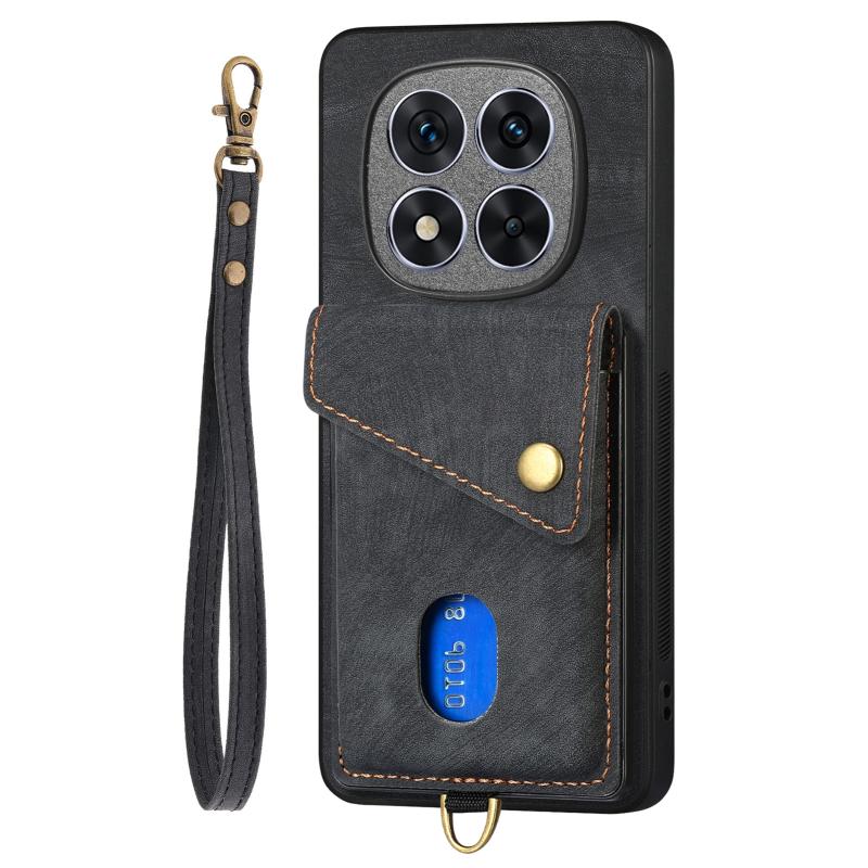 For Xiaomi Redmi Note 14 Pro 5G Retro Card Wallet Fold Leather Phone Case with Strap(Black)