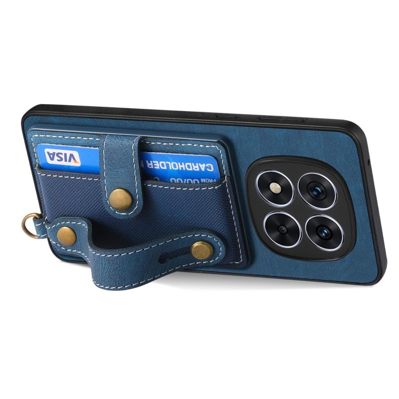 For Xiaomi Redmi Note 14 Pro 5G Retro Cross Wristband Wallet Leather Back Phone Case(Blue)
