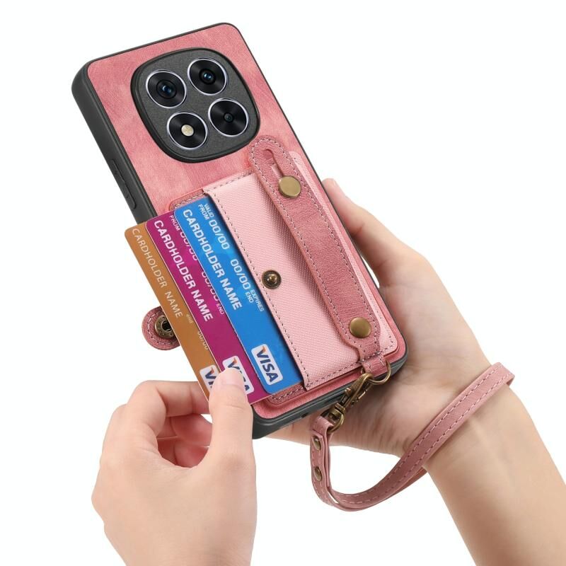 Για Xiaomi Redmi Note 14 Pro 5G Ρετρό σταυρό Wristband πορτοφόλι δέρμα πίσω τηλέφωνο υπόθεση (ρόζ)