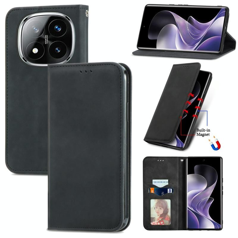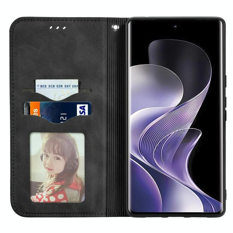 Για Xiaomi Redmi Note 14 Pro + 5G Retro δέρμα αίσθηση μαγνητική Flip δέρμα τηλέφωνο υπόθεση (μαύρο)