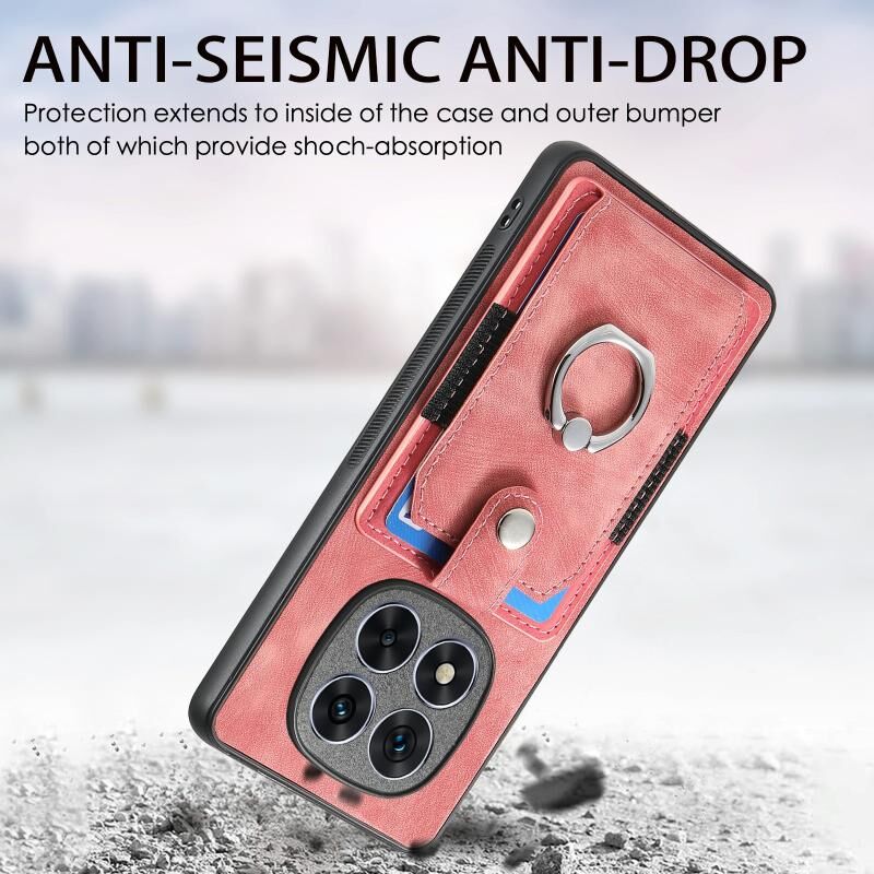 Για Xiaomi Redmi Σημείωση 14 Pro 5G Ρετρό δέρμα αίσθηση δαχτυλίδι κάρτα πορτοφόλι υπόθεση τηλεφώνου (ροζ)