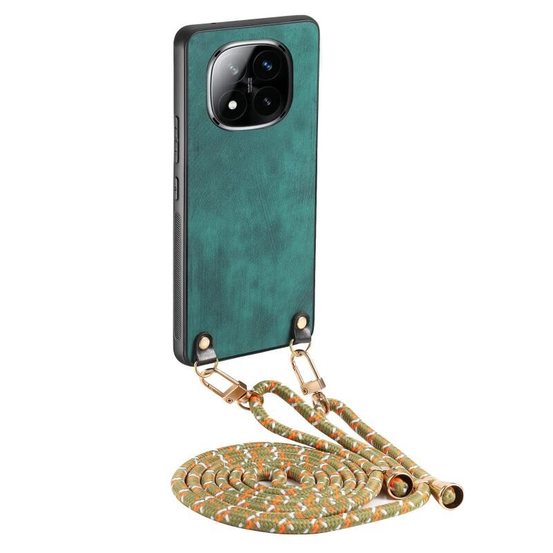 Για Xiaomi Redmi Note 14 Pro 5G Vintage δέρμα PC πίσω κάλυψη τηλέφωνο υπόθεση με λουράκι σταυρού (πράσινο)