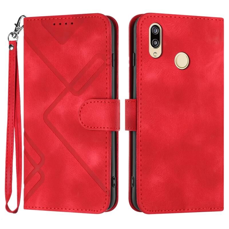 Για Xiaomi Redmi Note 7 Γραμμή μοτίβο δέρμα δέρμα αίσθηση υπόθεση τηλεφώνου (κόκκινο)