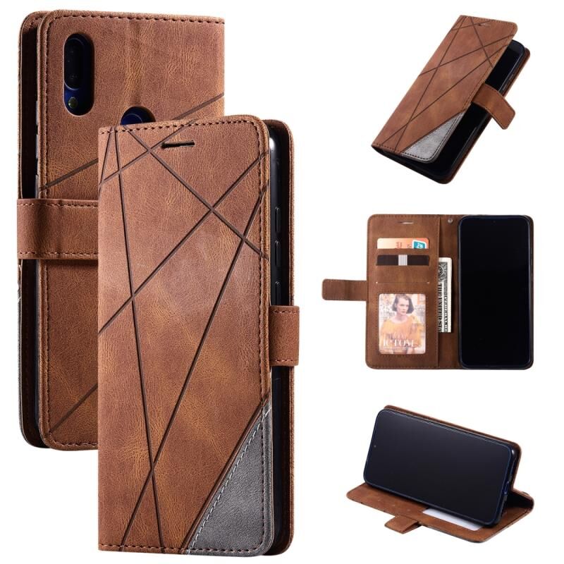 Για Xiaomi Redmi Note 7 / Note 7 Pro Skin Feel Splicing οριζόντια Flip δερμάτινη θήκη με θήκη & υποδοχές καρτών & πορτοφόλι & πλαίσιο φωτογραφιών (καφέ)