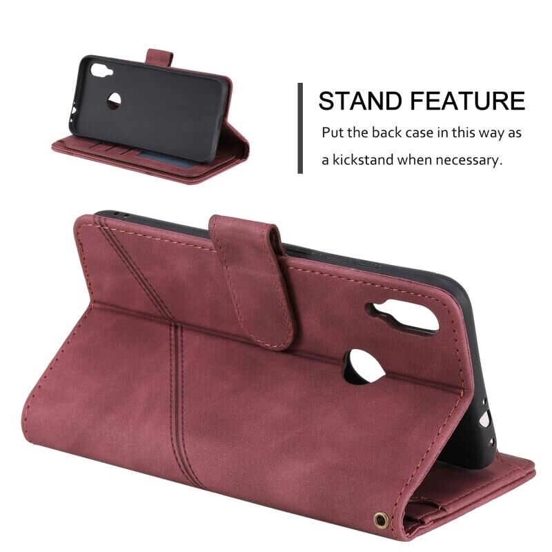Για Xiaomi Redmi Note 7 Skin Feel Business Οριζόντια Flip PU δερμάτινη θήκη με θήκη & υποδοχές πολλαπλών καρτών & πορτοφόλι & κορδόνι & κορνίζα & πλαίσιο φωτογραφιών (κόκκινο)