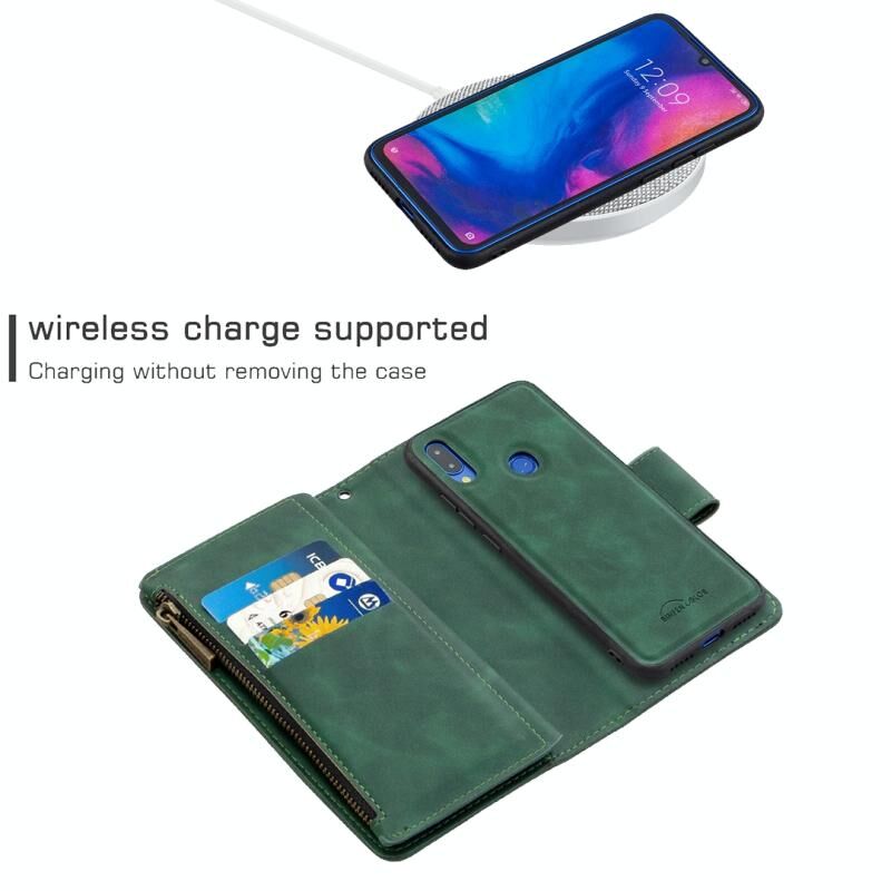 Για Xiaomi Redmi Note 7 Skin Feel Αποσπώμενο μαγνητικό φερμουάρ Οριζόντια Flip PU δερμάτινη θήκη με υποδοχές πολλαπλών καρτών & κάτοχος & πορτοφόλι & κορνίζα φωτογραφιών & κορδόνι (πράσινο)