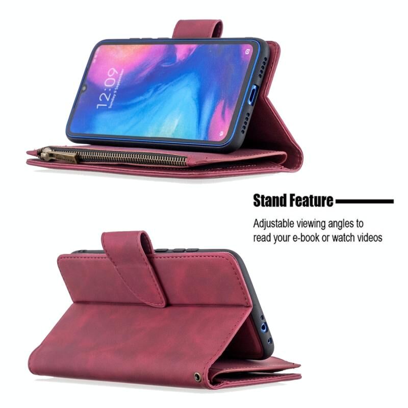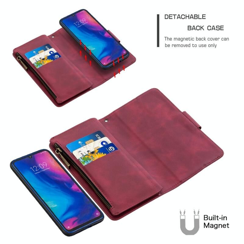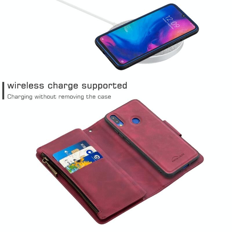 Για Xiaomi Redmi Note 7 Skin Feel Αποσπώμενο μαγνητικό φερμουάρ Οριζόντια Flip PU δερμάτινη θήκη με υποδοχές πολλαπλών καρτών & κάτοχος & πορτοφόλι & κορνίζα φωτογραφιών & κορδόνι (Κόκκινο)