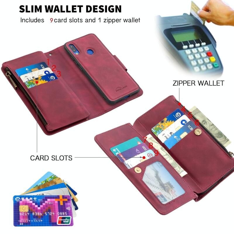 4. Πολυλειτουργικός σχεδιασμός, βολικές υποδοχές για κάρτες, πορτοφόλι με φερμουάρ, θήκη, αποσπώμενο μαγνητικό προστατευτικό κάλυμμα στο πίσω μέρος.