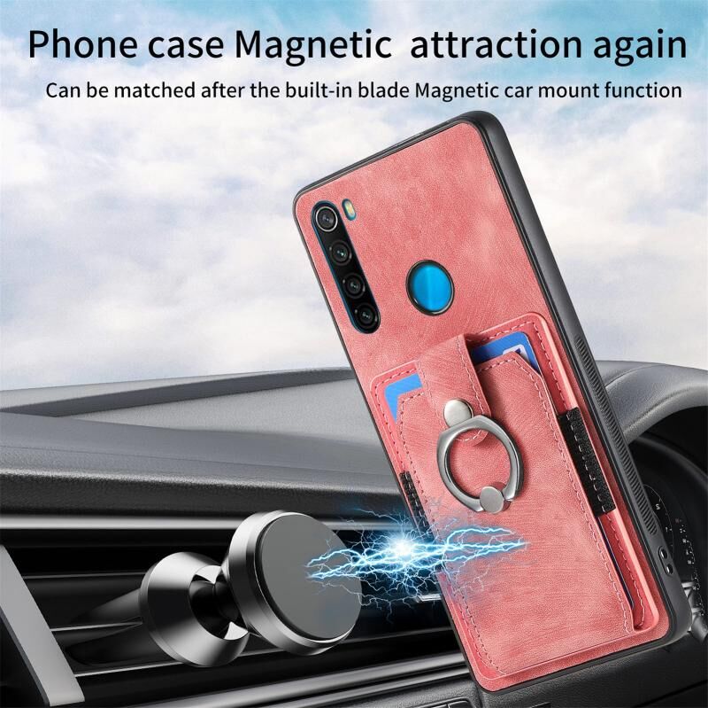 Για Xiaomi Redmi Σημείωση 8 2021 Ρετρό δέρμα-άισθησης δαχτυλίδι κάρτα πορτοφόλι υπόθεση τηλεφώνου (ρόζ)
