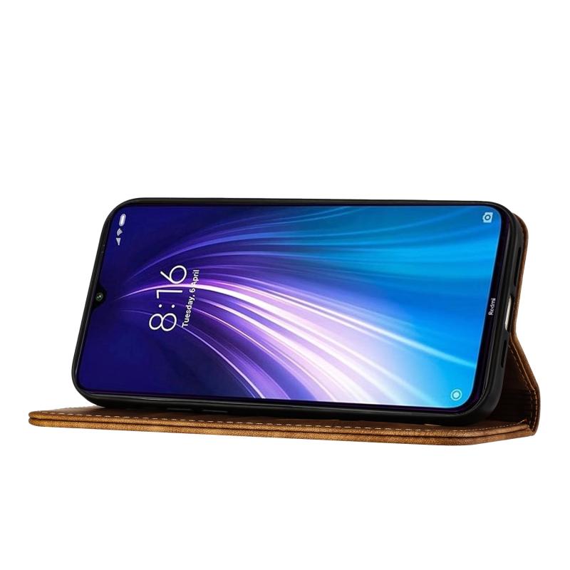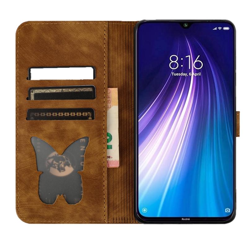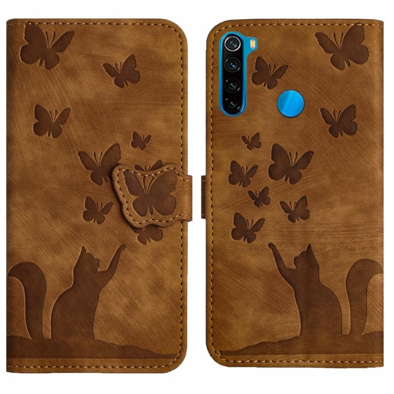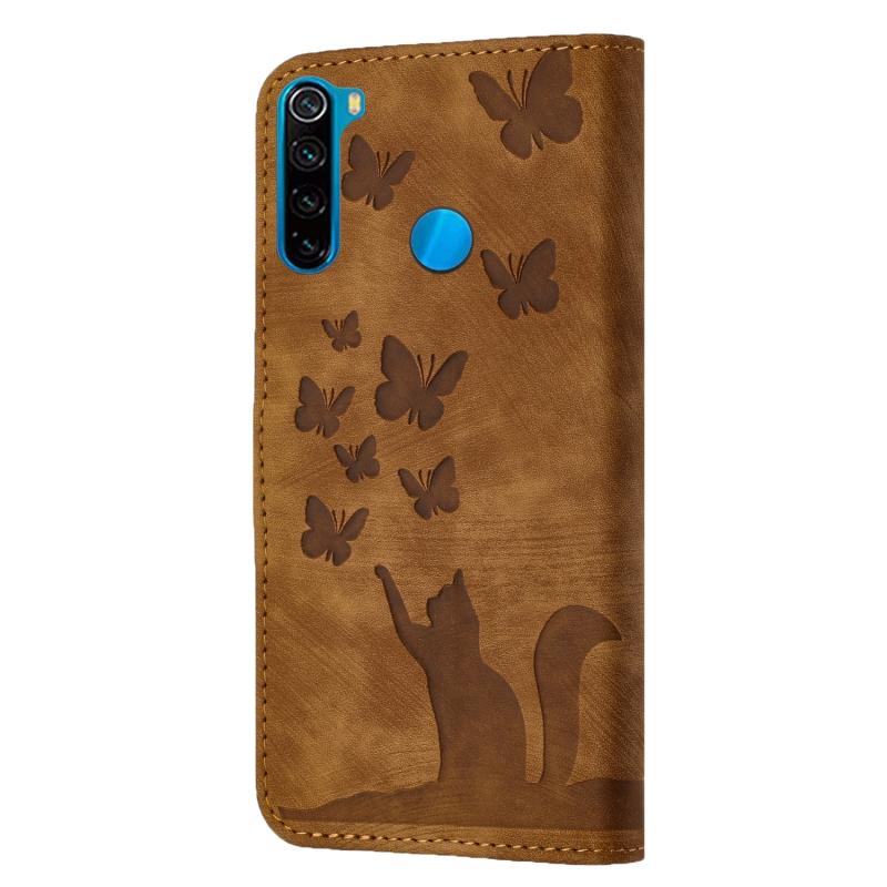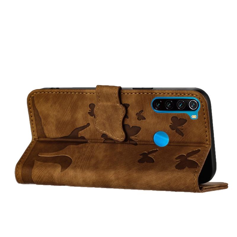 Θήκη δερμάτινη flip με ανάγλυφο σχέδιο γάτας για Xiaomi Redmi Note 8 (Καφέ)