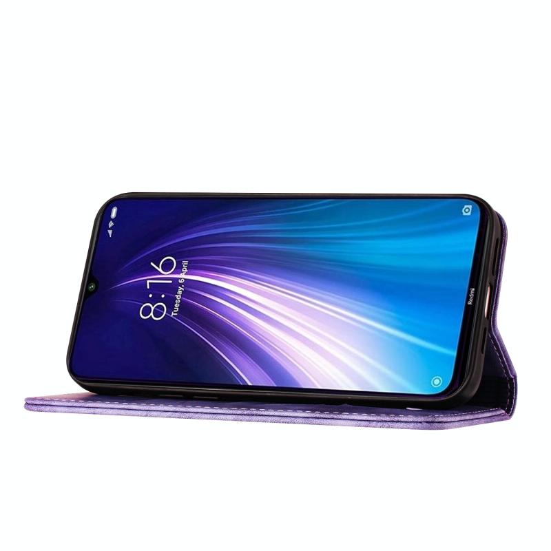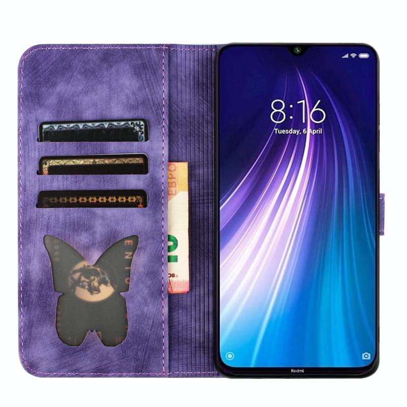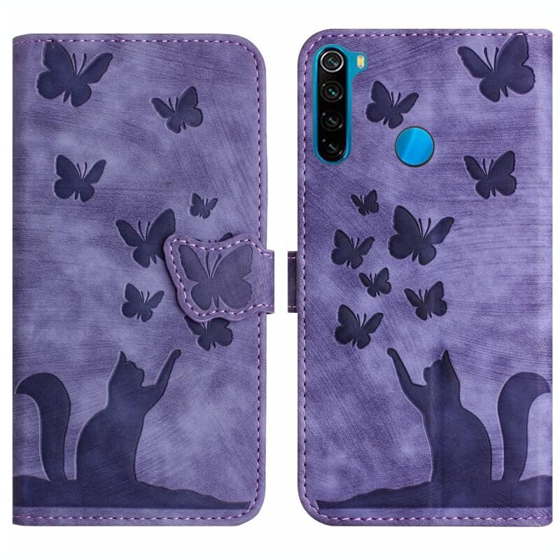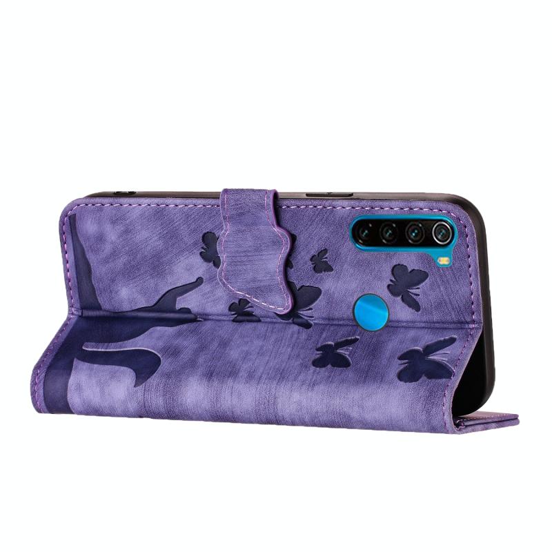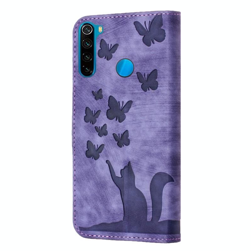 Θήκη δερμάτινη flip με ανάγλυφο σχέδιο γάτας για Xiaomi Redmi Note 8 (Μωβ)