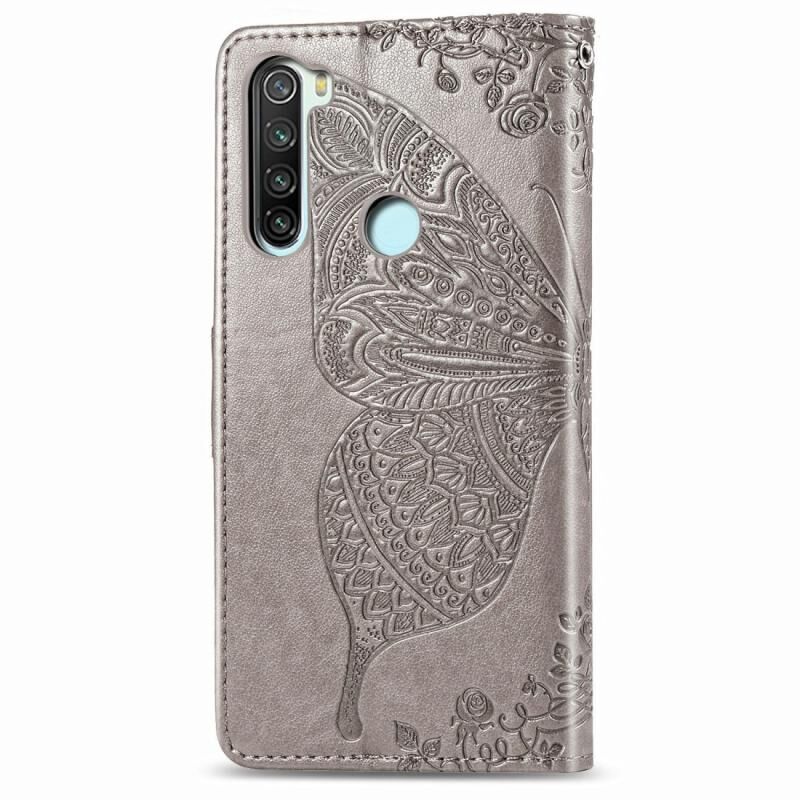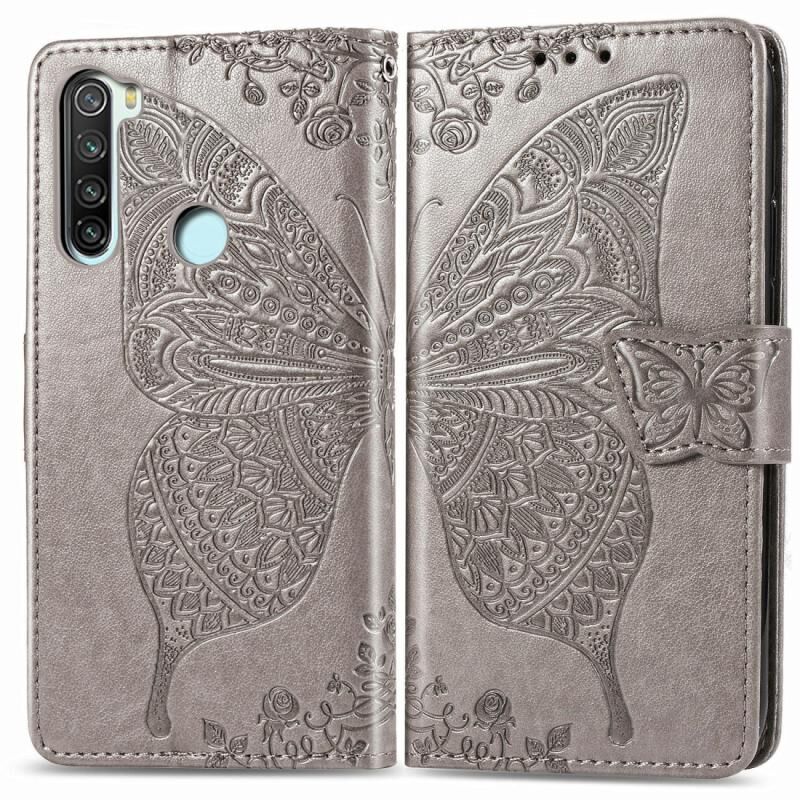 For Xiaomi Redmi Note 8 Butterfly Love Flower Embossed Horizontal Flip Leather Case with Bracket / Card Slot / Wallet / Lanyard(Gray)