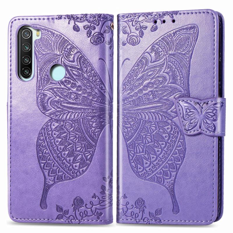 For Xiaomi Redmi Note 8 Butterfly Love Flower Embossed Horizontal Flip Leather Case with Bracket / Card Slot / Wallet / Lanyard(Light Purple)