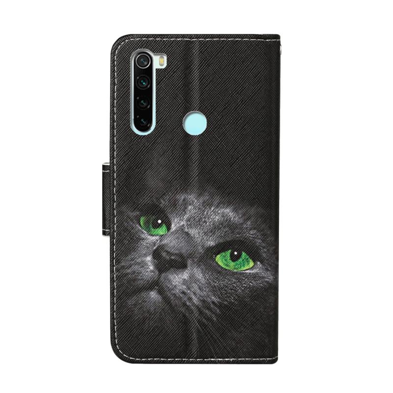 For Xiaomi Redmi Note 8 Colored Drawing Pattern Horizontal Flip Leather Case with Holder & Card Slots & Wallet(Black Cat)
