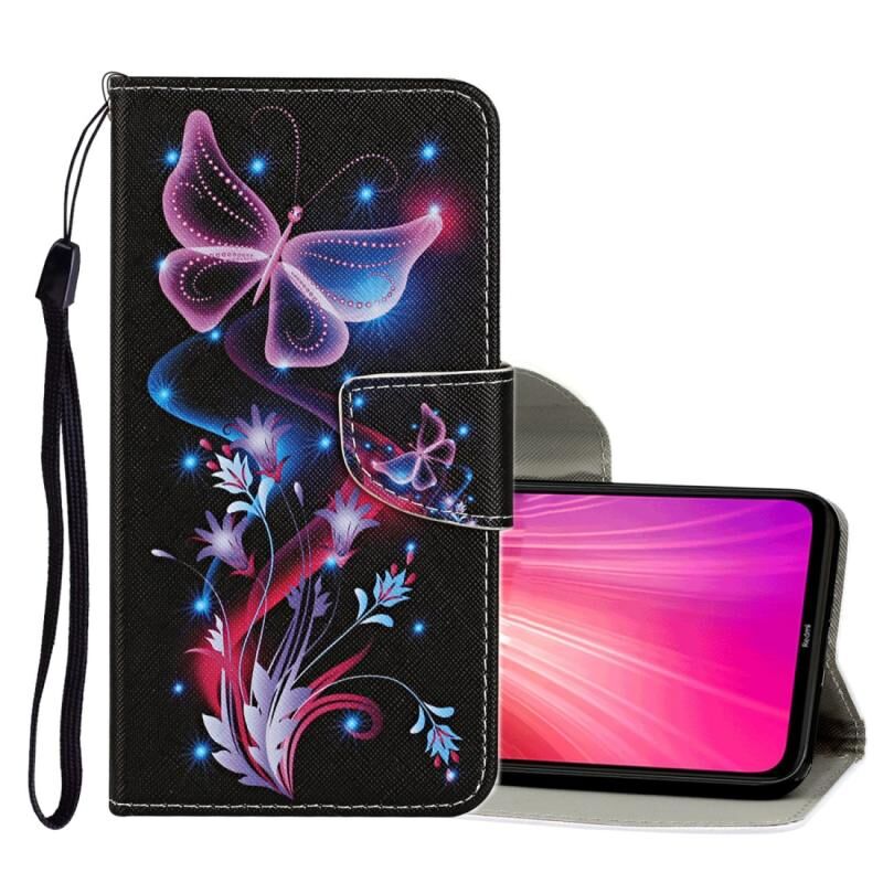 Θήκη δέρματος οριζόντιας αναδίπλωσης με σχέδιο πολύχρωμης ζωγραφικής για Xiaomi Redmi Note 8 με βάση & υποδοχές καρτών & πορτοφόλι (Φωτεινή Πεταλούδα)