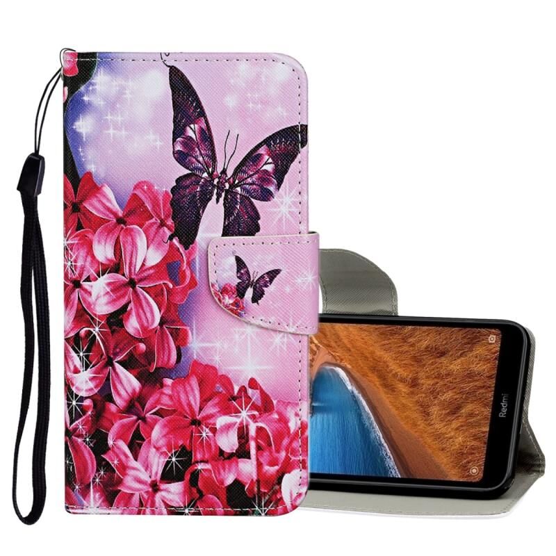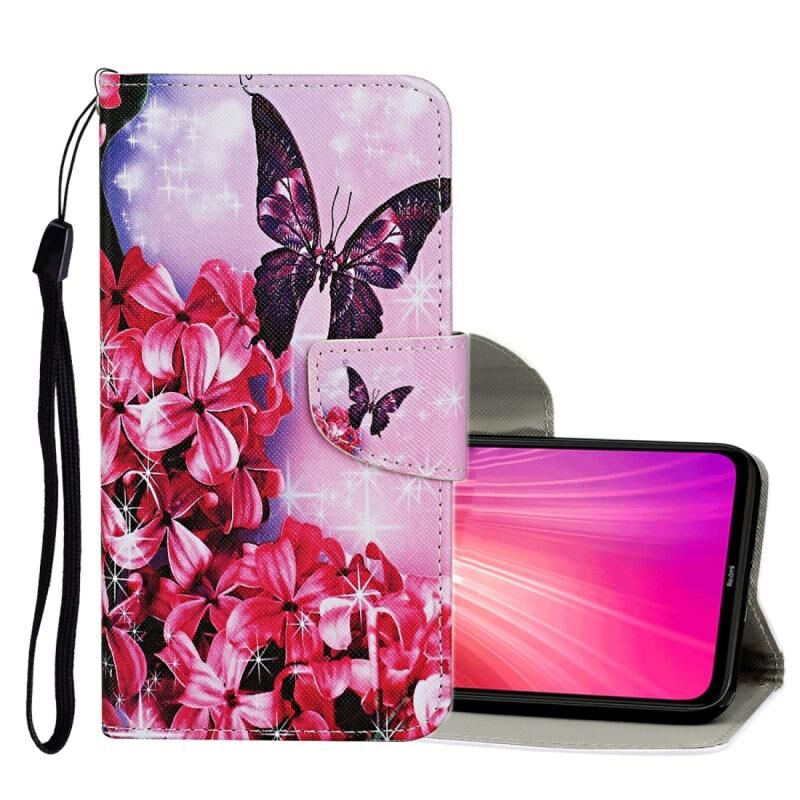 Θήκη δέρματος οριζόντιας αναδίπλωσης με σχέδιο πολύχρωμης ζωγραφικής για Xiaomi Redmi Note 8 με βάση & υποδοχές καρτών & πορτοφόλι (Κόκκινο Πεταλούδα Λουλούδι)