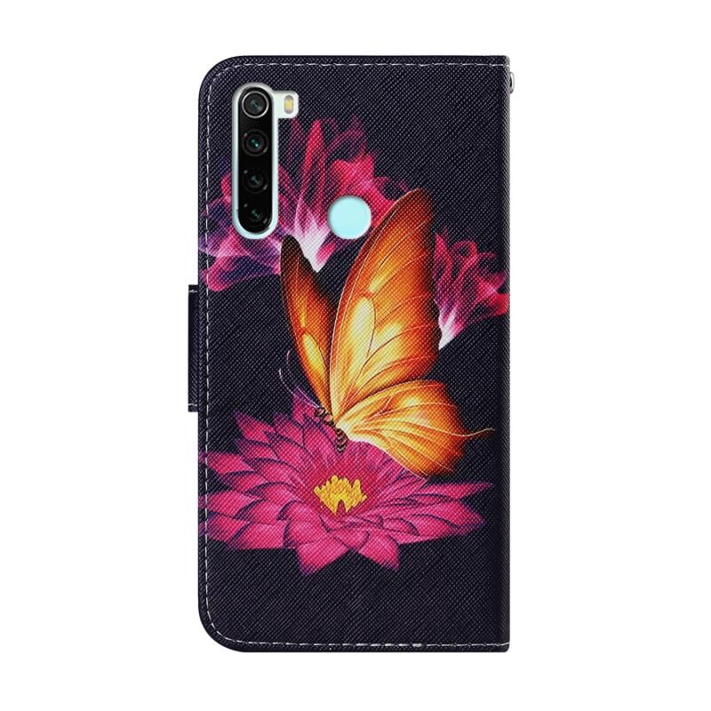 Θήκη για Xiaomi Redmi Note 8 με έγχρωμο σχέδιο, οριζόντια αναδίπλωση από δερματίνη PU με βάση στήριξης, θήκες για κάρτες, πορτοφόλι & λουρί (Μαύρο Μάρμαρο)