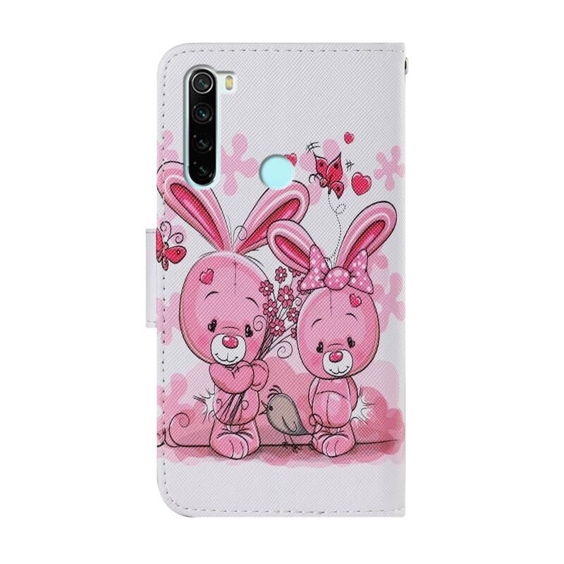 Θήκη για Xiaomi Redmi Note 8 με πολύχρωμο σχέδιο, οριζόντια αναδίπλωση από δερματίνη PU με βάση στήριξης, θήκες για κάρτες, πορτοφόλι & λουρί (Χαριτωτό Κουνελάκι)