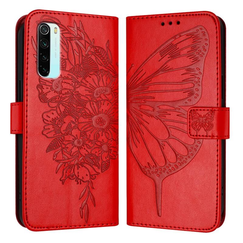 Για Xiaomi Redmi Note 8 ανάγλυφη πεταλούδα δερμάτινη θήκη τηλεφώνου (κόκκινο)