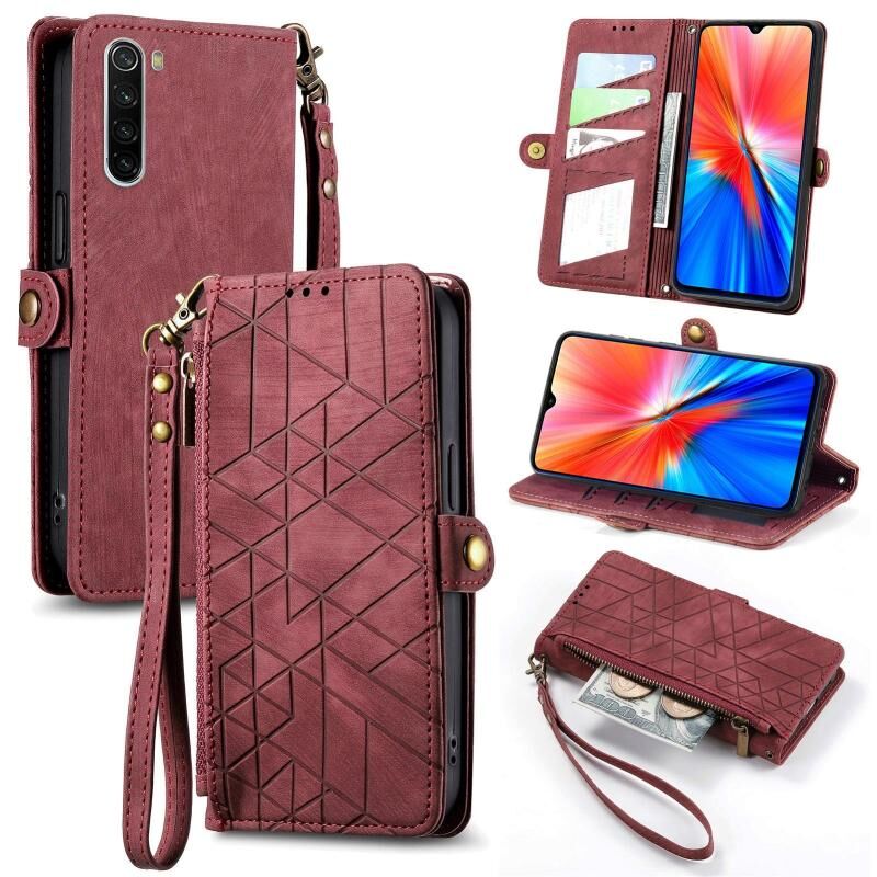 Για Xiaomi Redmi Note 8 γεωμετρική φερμουάρ πορτοφόλι πλευρά πόρπη δερμάτινη θήκη τηλεφώνου (κόκκινο)