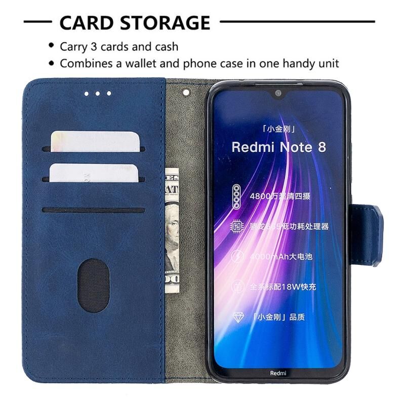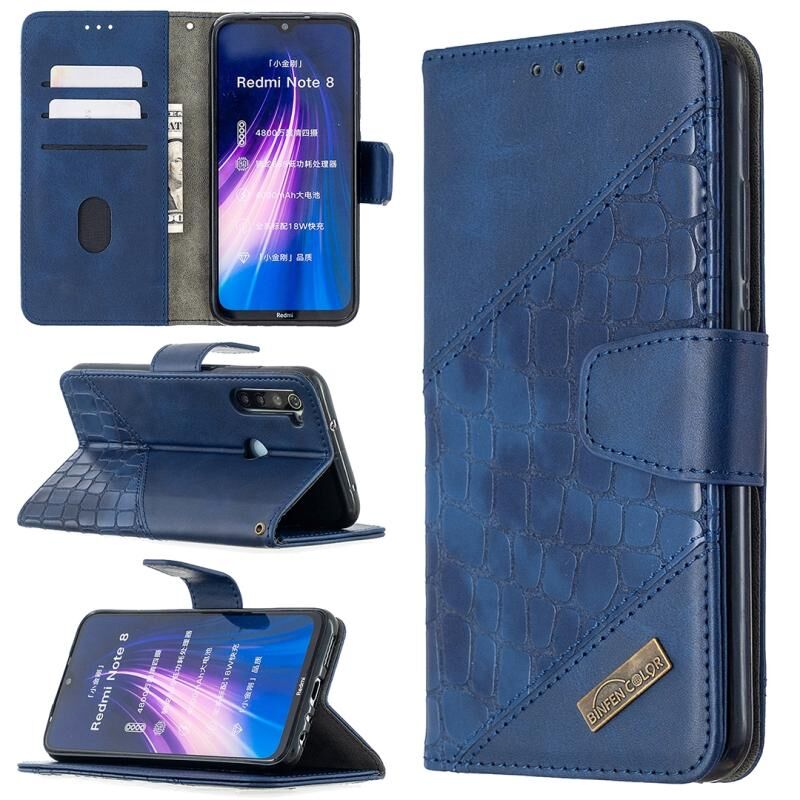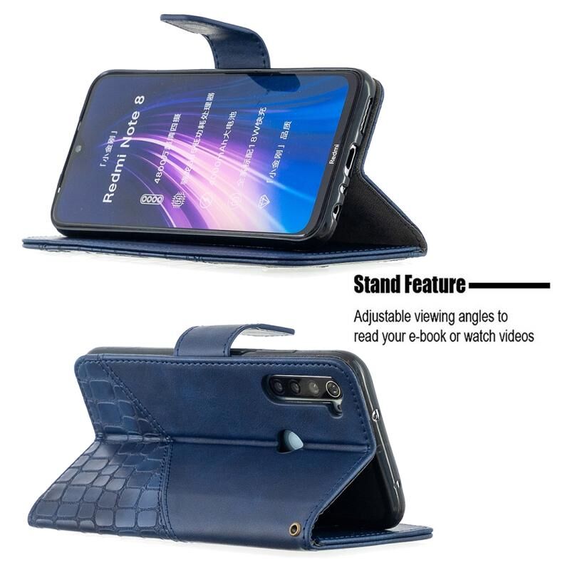 Θήκη για Xiaomi Redmi Note 8, οριζόντια, με υφή κροκόδειλου, από δερματίνη PU, σε χρώμα που ταιριάζει, με πορτοφόλι, βάση & θήκες για κάρτες (Μαύρο)