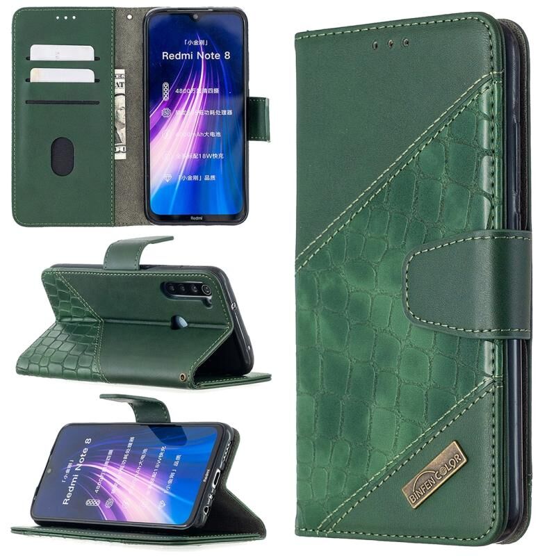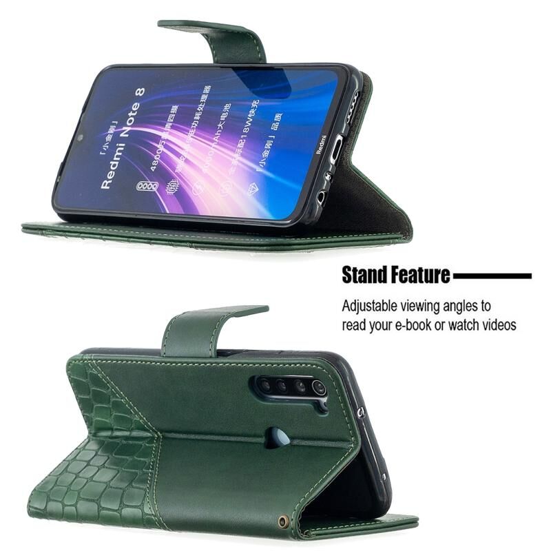 Θήκη για Xiaomi Redmi Note 8, οριζόντια, με υφή κροκόδειλου, από δερματίνη PU, σε χρώμα που ταιριάζει, με πορτοφόλι, βάση & θήκες για κάρτες (Μαύρο)