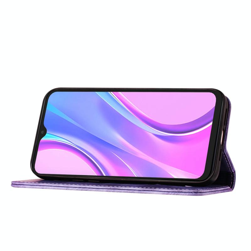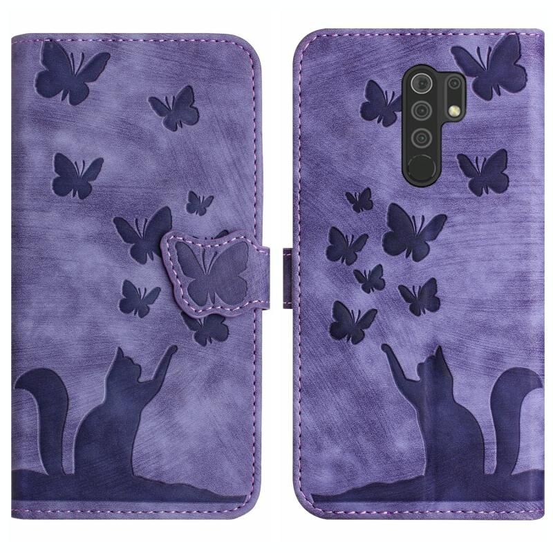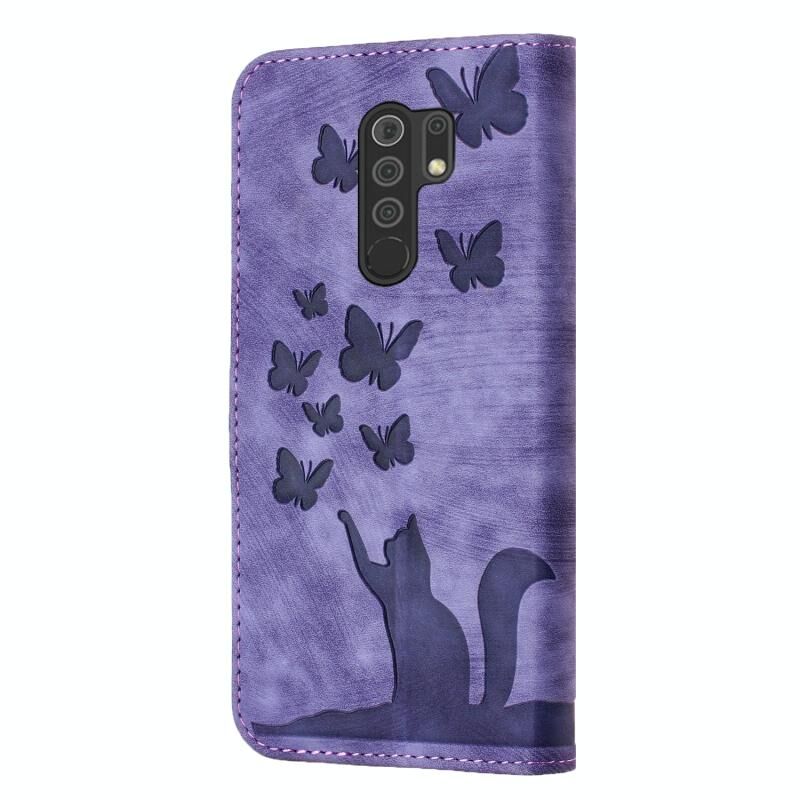 Θήκη δερμάτινη flip με ανάγλυφο σχέδιο γάτας για Xiaomi Redmi Note 8 Pro (Μωβ)