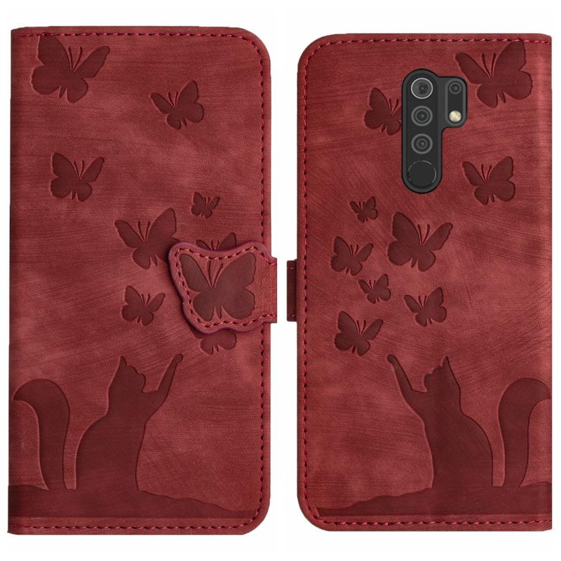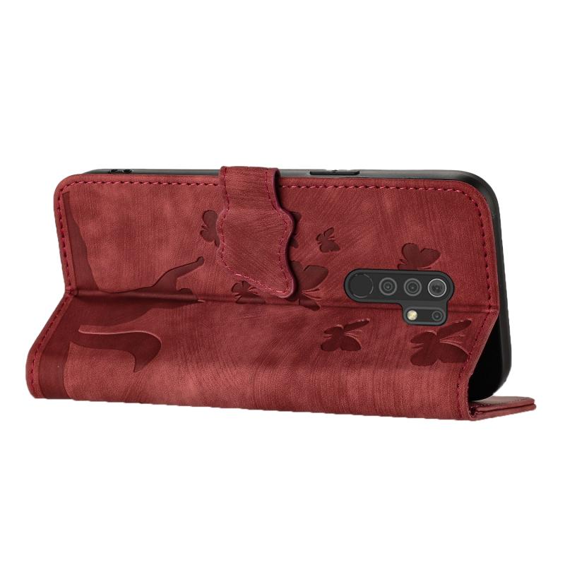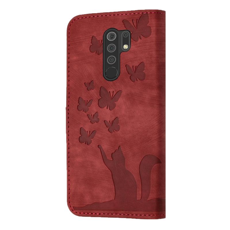 Θήκη δερμάτινη flip με ανάγλυφο σχέδιο γάτας για Xiaomi Redmi Note 8 Pro (Κόκκινο)