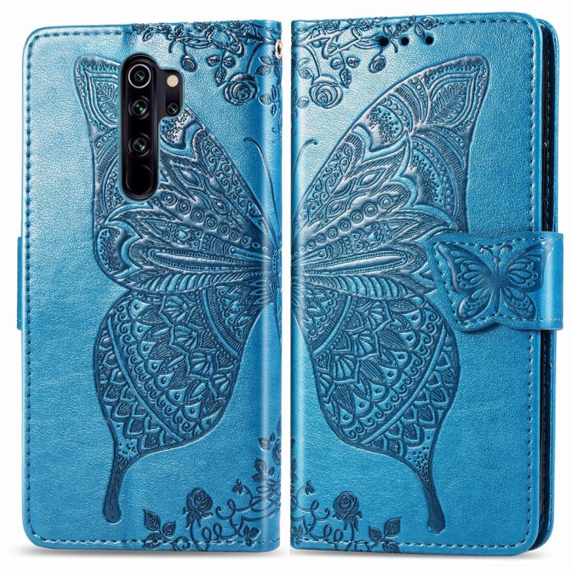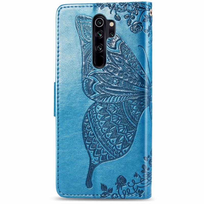 For Xiaomi Redmi Note 8 Pro Butterfly Love Flower Embossed Horizontal Flip Leather Case with Bracket / Card Slot / Wallet / Lanyard(Blue)