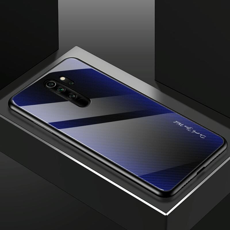 Για Xiaomi Redmi Note 8 Pro Carbon Fiber Texture Gradient Color Glass Case (μωβ)