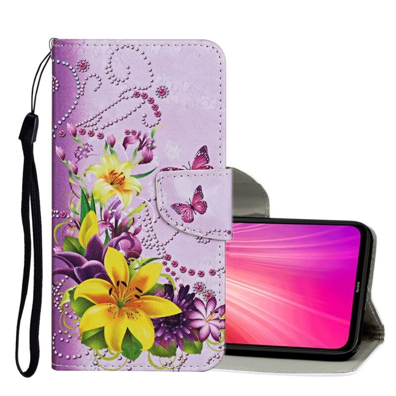 Θήκη δέρματος οριζόντιας αναδίπλωσης με σχέδιο ζωγραφικής και χρώματα για Xiaomi Redmi Note 8 Pro με βάση στήριξης & υποδοχές καρτών & πορτοφόλι (Μαύρο Αστέρι)