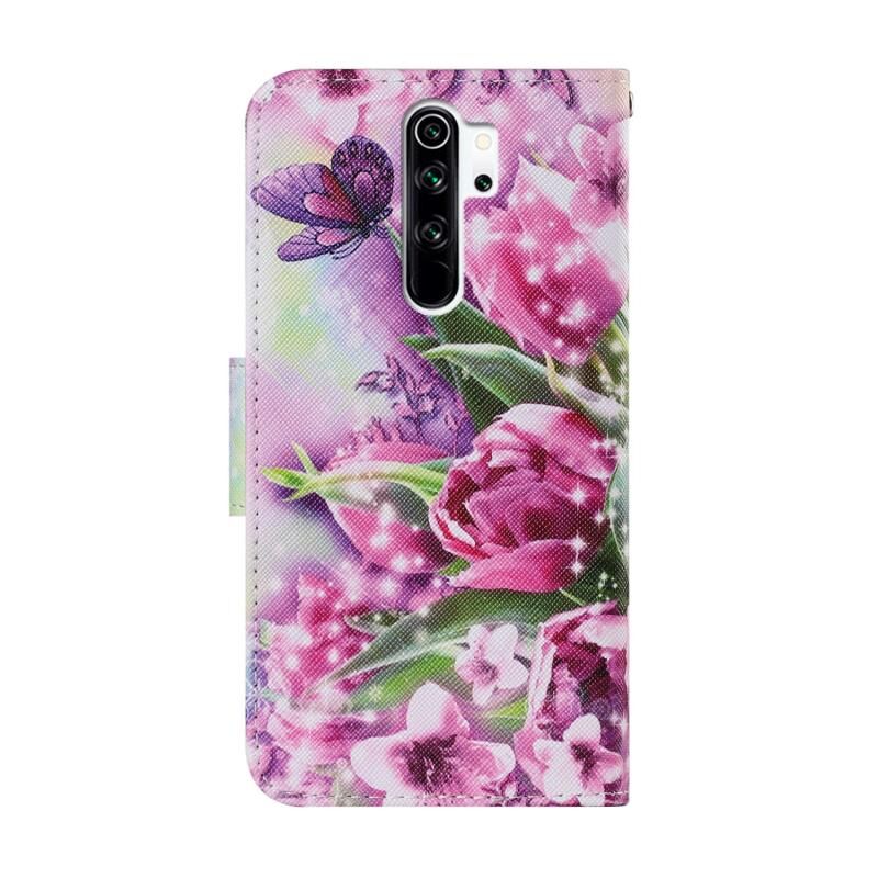 Θήκη για Xiaomi Redmi Note 8 Pro με πολύχρωμο σχέδιο, οριζόντια αναδίπλωση από δερματίνη PU με βάση στήριξης, θήκες για κάρτες, πορτοφόλι & κορδόνι (Ροζ Πεταλούδα)