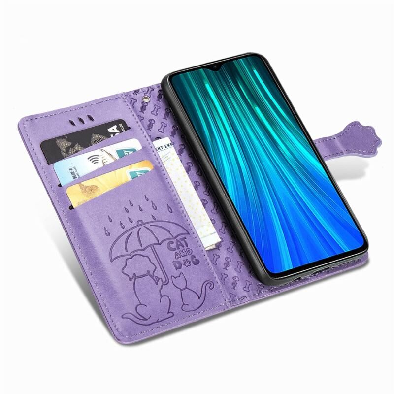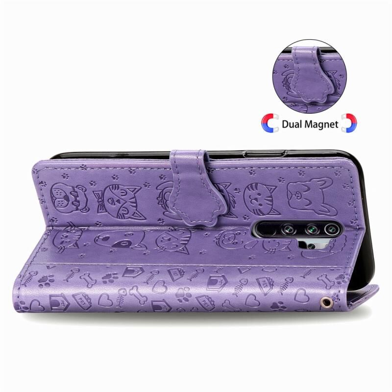 Θήκη για Xiaomi Redmi Note 8 Pro, χαριτωμένη με ανάγλυφα σχέδια γάτας και σκύλου, οριζόντια, από δερματίνη PU με βάση / υποδοχή κάρτας / πορτοφόλι / κορδόνι (Γκρι)