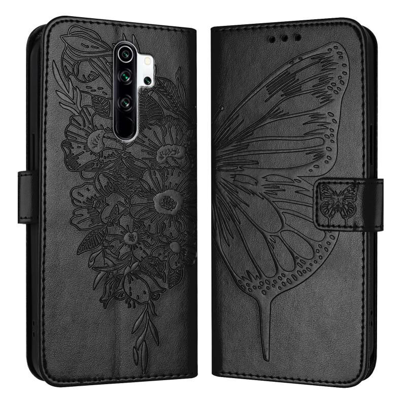 Για Xiaomi Redmi Note 8 Pro ανάγλυφη πεταλούδα δερμάτινη θήκη τηλεφώνου (μαύρο)