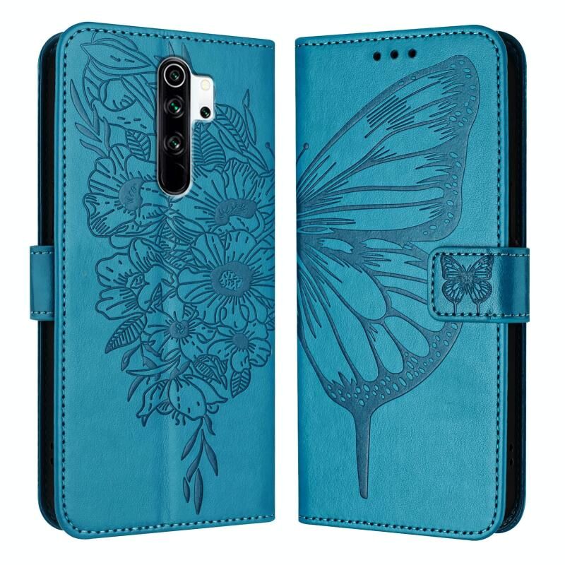 Για Xiaomi Redmi Note 8 Pro ανάγλυφη πεταλούδα δερμάτινη θήκη τηλεφώνου (μπλε)