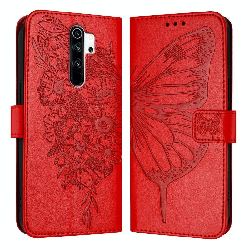 Για Xiaomi Redmi Note 8 Pro ανάγλυφη πεταλούδα δερμάτινη θήκη τηλεφώνου (κόκκινο)