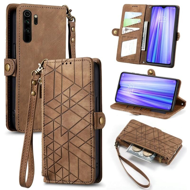 Για Xiaomi Redmi Note 8 Pro γεωμετρική φερμουάρ πορτοφόλι πλευρά πόρπη δερμάτινη θήκη τηλεφώνου (καφέ)