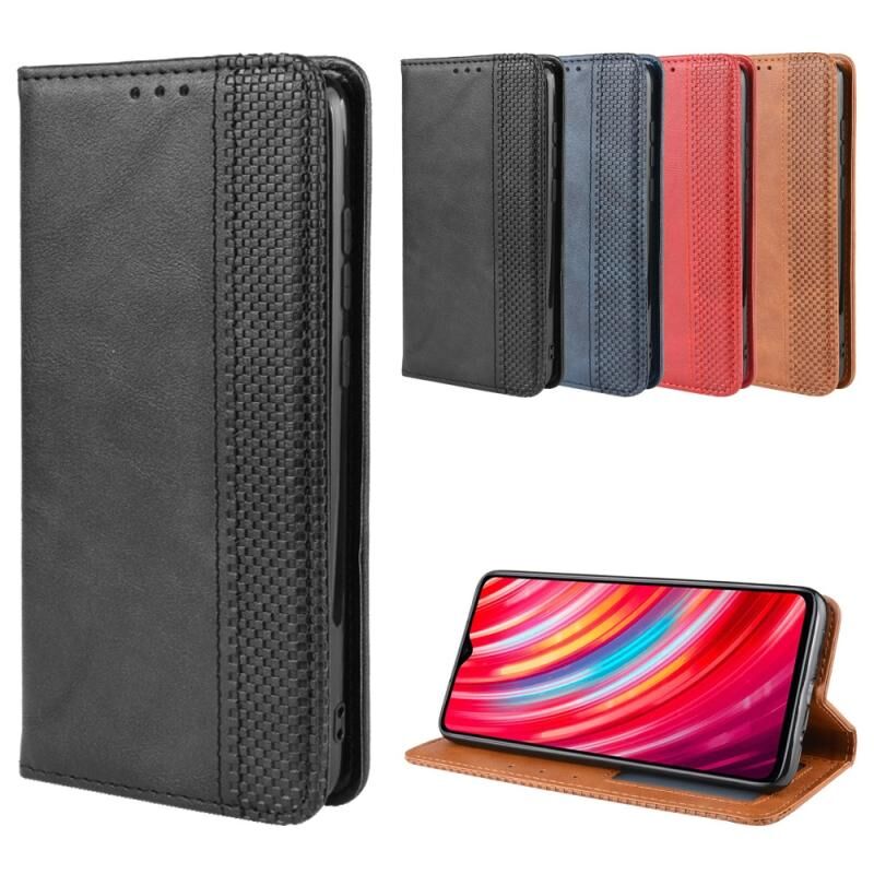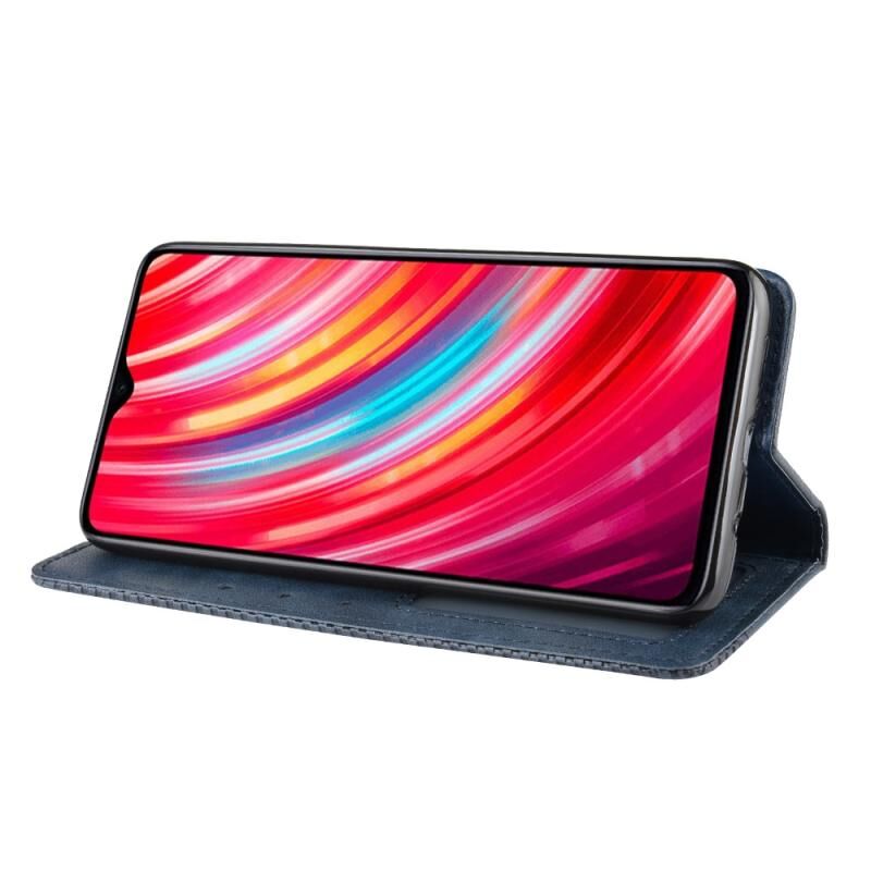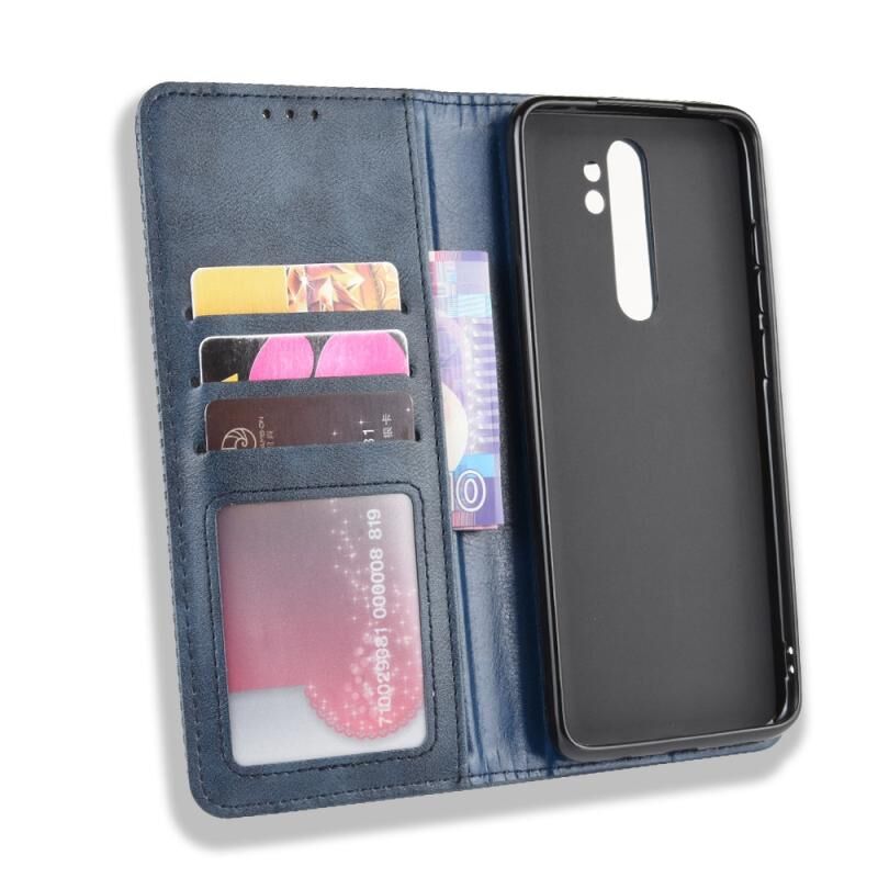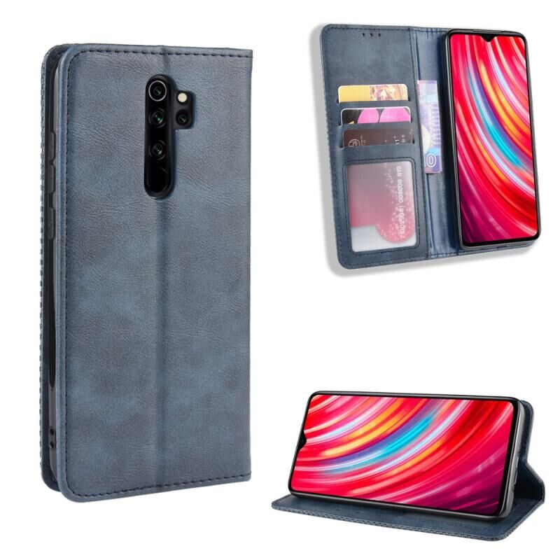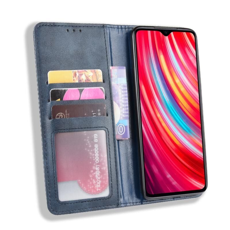 Θήκη δέρματος οριζόντιας αναδίπλωσης με μαγνητικό κούμπωμα, υφή Crazy Horse Retro για Xiaomi Redmi Note 8 Pro με βάση στήριξης & υποδοχές καρτών & κορνίζα φωτογραφιών (Μπλε)