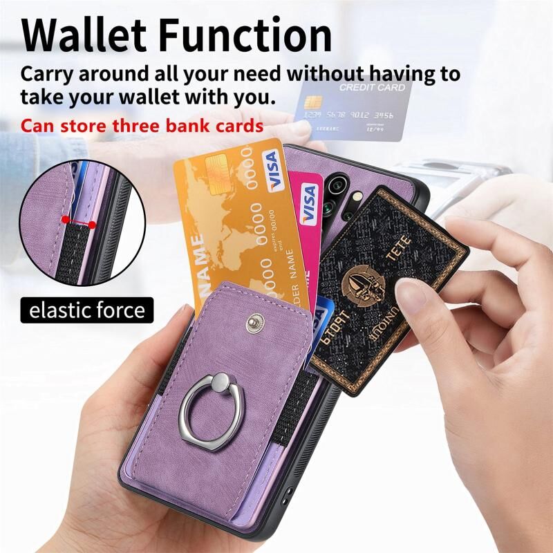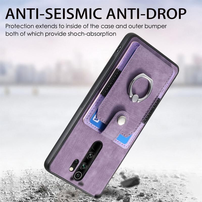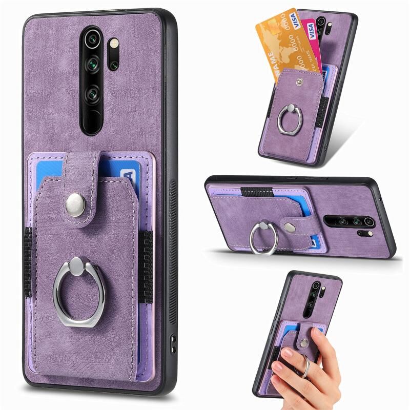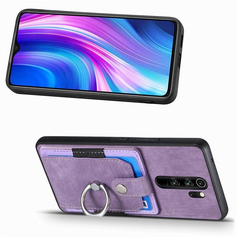 Για Xiaomi Redmi Σημείωση 8 Pro Ρετρό δέρμα-άισθησης δαχτυλίδι κάρτα πορτοφόλι υπόθεση τηλεφώνου (μωβ)