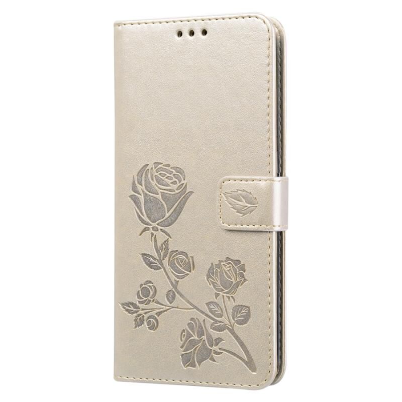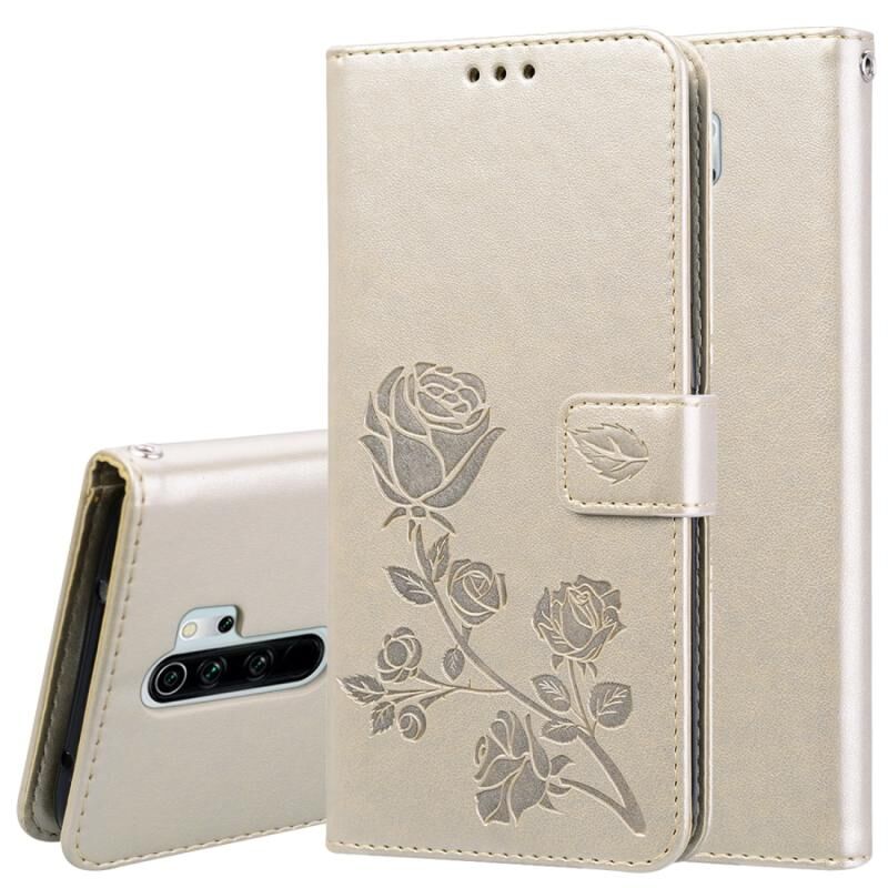 Για Xiaomi Redmi Note 8 Pro Rose Embossed Horizontal Flip PU Leather Case, με θήκη & υποδοχές καρτών & πορτοφόλι (χρυσό)