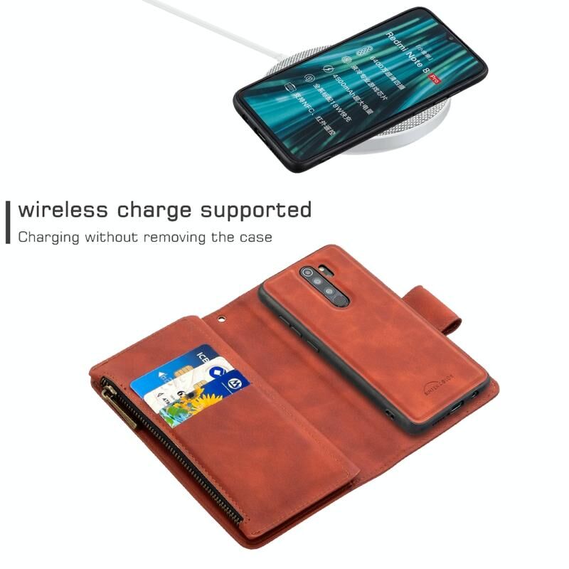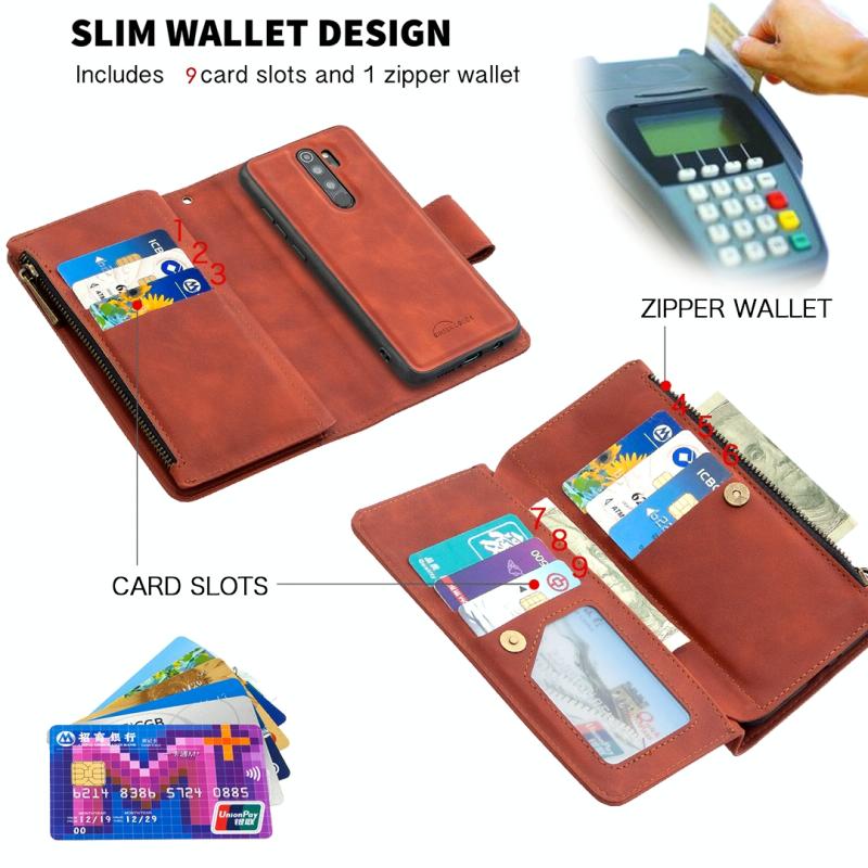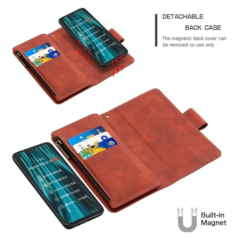 4. Πολυλειτουργικός σχεδιασμός, βολικές θήκες για κάρτες, πορτοφόλι με φερμουάρ, βάση, αποσπώμενη μαγνητική προστατευτική πίσω θήκη.