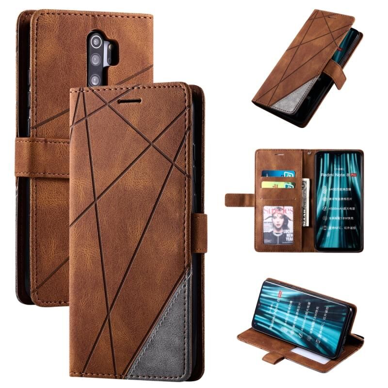 Για Xiaomi Redmi Note 8 Pro Skin Feel Splicing οριζόντια Flip δερμάτινη θήκη με θήκη & υποδοχές καρτών & πορτοφόλι & πλαίσιο φωτογραφιών (Καφέ)